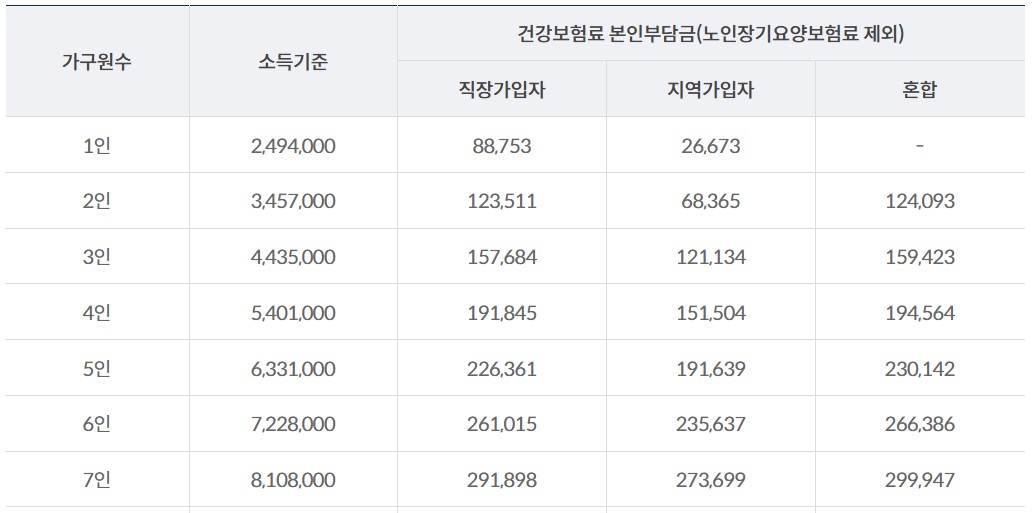 🔸동거인을 제외한 세대원 부(지역)와 모(직장) 월보험료 합계액 194,564원(4인 혼합)이하이면 15만원 지급