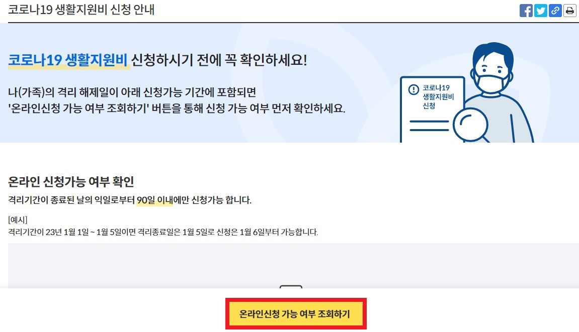 🔸가구원 1명이 격리통지를 받고 격리기간이 종료된 후 다른 가족이 새로운 격리통지를 받은 경우에는 신규 통지로 판단하여 코로나 지원금 따로 신청 및 지급