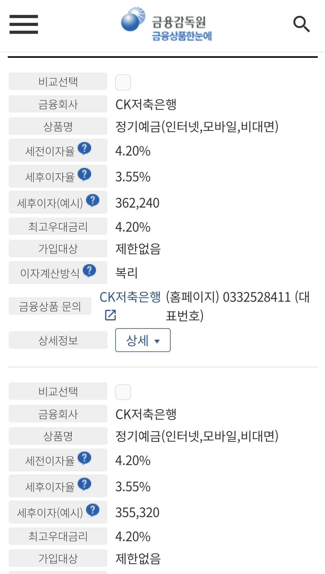 📢일반은행, 저축은행, 새마을금고, 신협의 예금금리를 한번에 비교할 수 있는 사이트 입니다. 아래링크를 통해 시간 절약하시고 많은 이자 받아가시기 바랍니다.