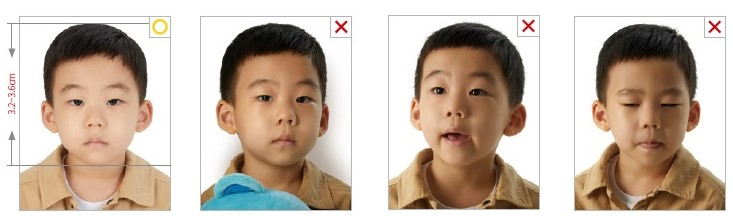 여권 갱신 준비물 영유아의 경우 성인 여권사진과 기준은 같습니다. 특히 주의해야 할 것은 장난감이나 보호자 등 다른 부분이 사진에 노출되면 안됩니다. 입은 다물고 찍어야 하지만 36개월 미만 영유아의 경우에만 입을 조금 벌어진 상태의 사진도 허용됩니다.