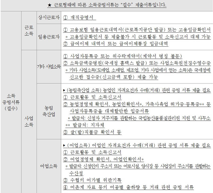 재직증명서, 사업자등록증, 사업활동 증명서류를 통해 실제 근로여부를 확인합니다. 만약, 국가 또는 지자체가 인건비를 전액 지원하는 공공근로 등 및 사회적 일자리사업(노인, 장애인일자리사업 등) 참여는 근로활동 범위에서 제외됩니다. 단, 자활근로사업은 인정됩니다.