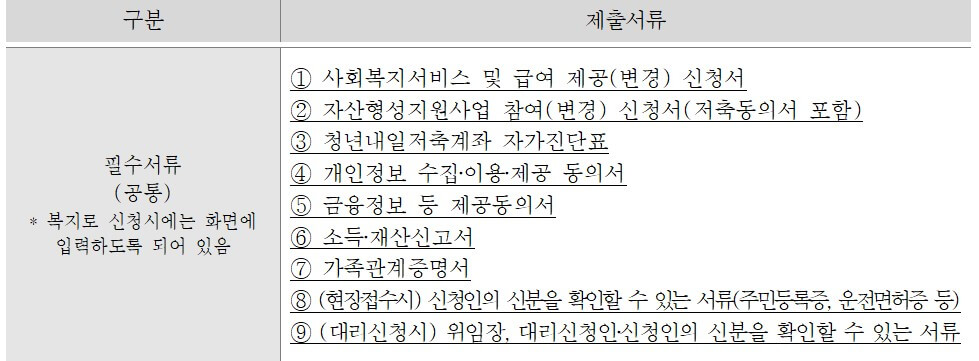 **유지기준(소득 상한) : 유지기준은 청년내일저축계좌 가입 동안 청년의 총 근로 및 사업소득이 3인가구 기준중위소득 100% 이하가 되어야 합니다.